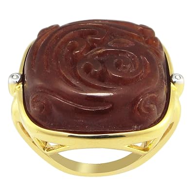 18k Gold Over Sterling Silver Carved Red Jade with Cubic Zirconia Accents Ring, Size 7 best buy