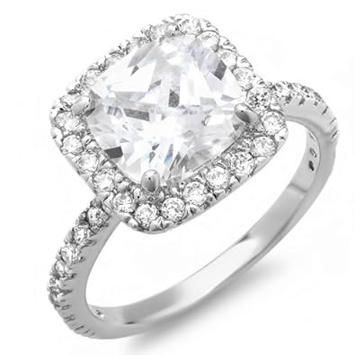 3.50 CT Ladies Cushion & Round Cubic Zirconia CZ Wedding Bridal Halo Engagement Ring (Available in size 6, 7, 8 best deal