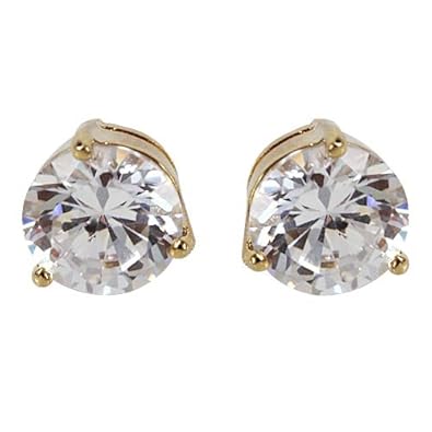 This is not made in 100% solid gold. Please don't confuse between real 100% solid gold and gold filled. Gold filled is an actual layer of gold-pressure bonded to another metal. Perfect for everyday and match any. These Stud Earring feature a 4mm Round cut CZ Stone 3-Prong set Cubic Zirconia Stone of the best quality. Made of Gold Filled Brass based fine Metal Gold Filled gives the effect like real gold jewelry.