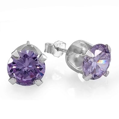 Product Title : Lavender Simulated Round Cut Cubic Zirconia CZ Sterling Silver 7 mm Stud Earrings special discount