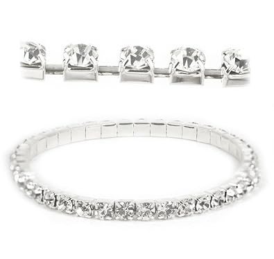 White Gold Tone Stretchable Link Tennis Bracelet with Diamond Cut Cubic Zirconia Crystal 1, 2, 3, 4, 5, 6, 7, 8 Strand best offers