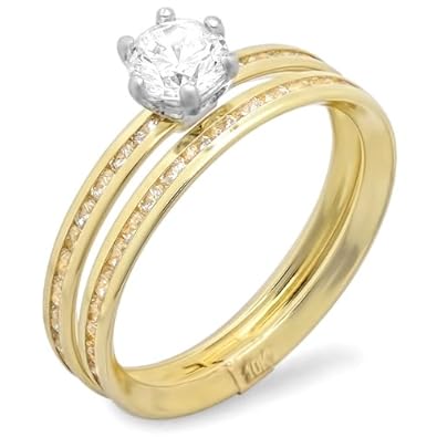 10k Yellow Gold Round Cubic Zirconia CZ Ladies Bridal Engagement Ring Set with Matching Band reviews