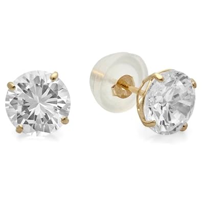 Product Title : 14k Yellow Gold Solitaire 2.00 CT Round Basket Setting 6mm Cubic Zirconia CZ Stud Earrings with Silicone covered Gold Pushbacks top price
