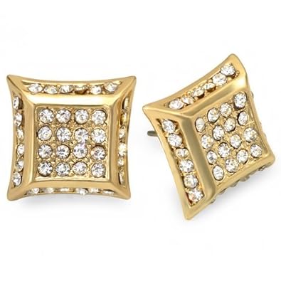 Product Title : 18k Yellow Gold Plated Stud Earrings 13 mm Cube Kite Shaped White Round Cubic Zirconia Iced Pushback Post special discount