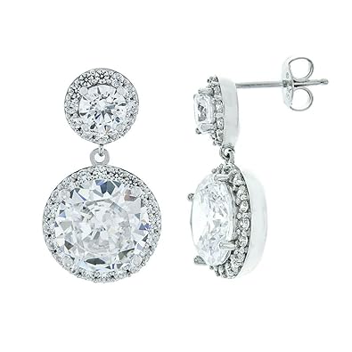 Platinum Plated Sterling Silver Round Cubic Zirconia Drop Earrings special discount