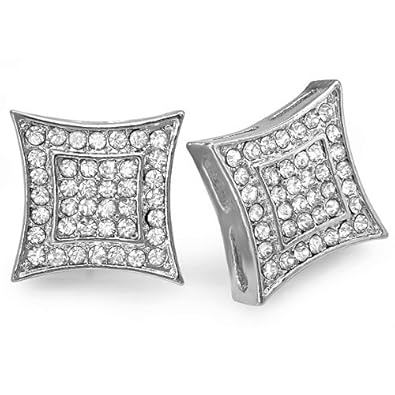 Platinum Plated Stud Earrings 15 mm Kite Shaped White Round Cubic Zirconia Iced Pushback Post best price