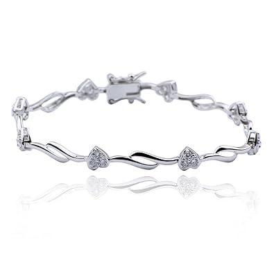 Product Title : Rhodium Plated Sterling Silver Cubic Zirconia Heart Stations Bracelet, 7.25" best price