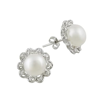 Product Title : Sterling Silver Cubic Zirconia and Freshwater Pearl Round Post Earrings best deal