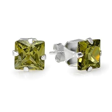 Product Title : Sterling Silver 8mm Peridot Green CZ Cubic Zirconia Square Stud Earrings top price