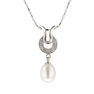 Product Title : Sterling Silver Cubic Zirconia and Freshwater Cultured Pearl Bar Chain Drop Necklace, 16.25" best buy