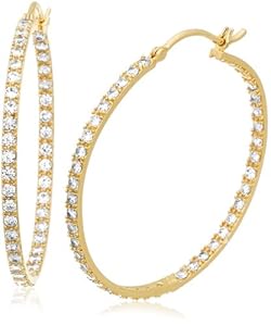 Product Title : Yellow Gold Plated Sterling Silver Cubic Zirconia Inside Out Hoop Earrings best seller